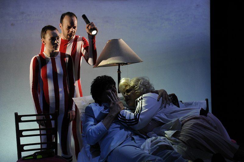 Two couples and 24 hours. Both only have 24 hours. The first couple, without food and water, caught in a dark mineshaft sincerely hopes that the rescue team will be able to find them within this time. The second, in bed in a hotel room, far from their spouses, is testing if the sex is still as good as it used to be years back when they were together. For both couples time is endless and at the same time far to fast. These things cannot be hastened. They take time, but we have less and less of it. Just like the contemporary haste affords us meager minutes for personal relationships, intimacy, love, so do interventions in the form of spams, these undesired emails, interrupt the time and words of both couples. Spam is extremely annoying: it fills up our inboxes and litters 24 hours a day. Today we're all available 24 hours a day, we're always connected and logged in. Pocket devices record our positions, movement, talks, messages, we're constantly under control. We constantly send and receive email, text messages, we chat online and it seems that our communication is slowly turning into spam, because, let's be honest, we mostly talk rubbish.