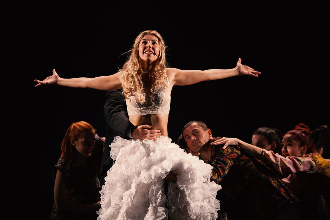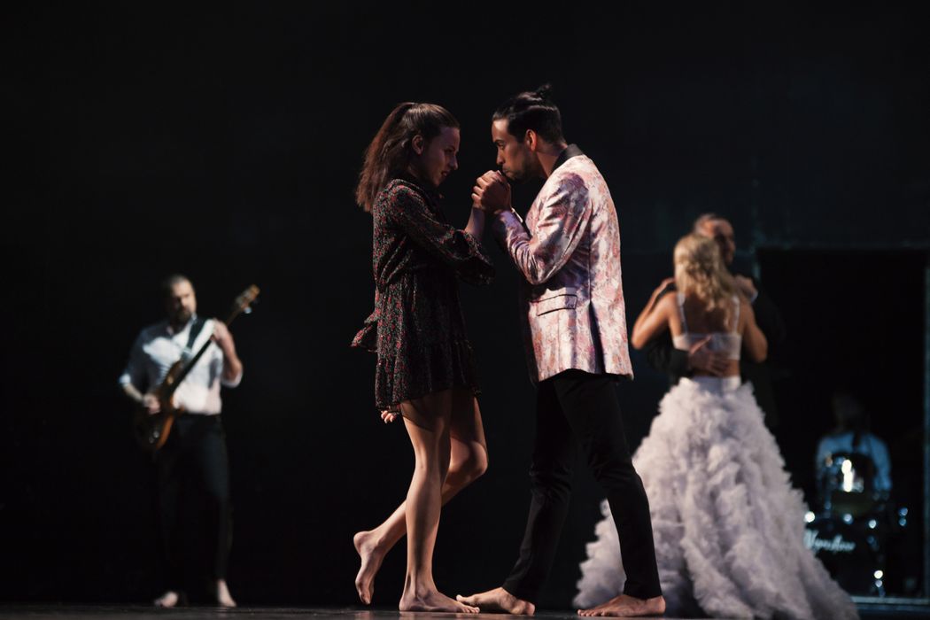 Michal Rynia in Nastja Bremec Rynia, the founders of the MN Dance Company, which strives to popularise dance among all generations and develops an inspiring and recognisable dance style, have so far created two well-received performances in cooperation with SNG Nova Gorica, the dance performance Urban Tales – Room with a View, Tie (2014) and the dance-drama The Conspiracy of Silence (2016). This time the dancers, again selected at an international audition, and the two actors from the SNG Nova Gorica ensemble were joined by musicians whose live music accompanies the couples in their desperate search for a formula of love and personal fulfilment.