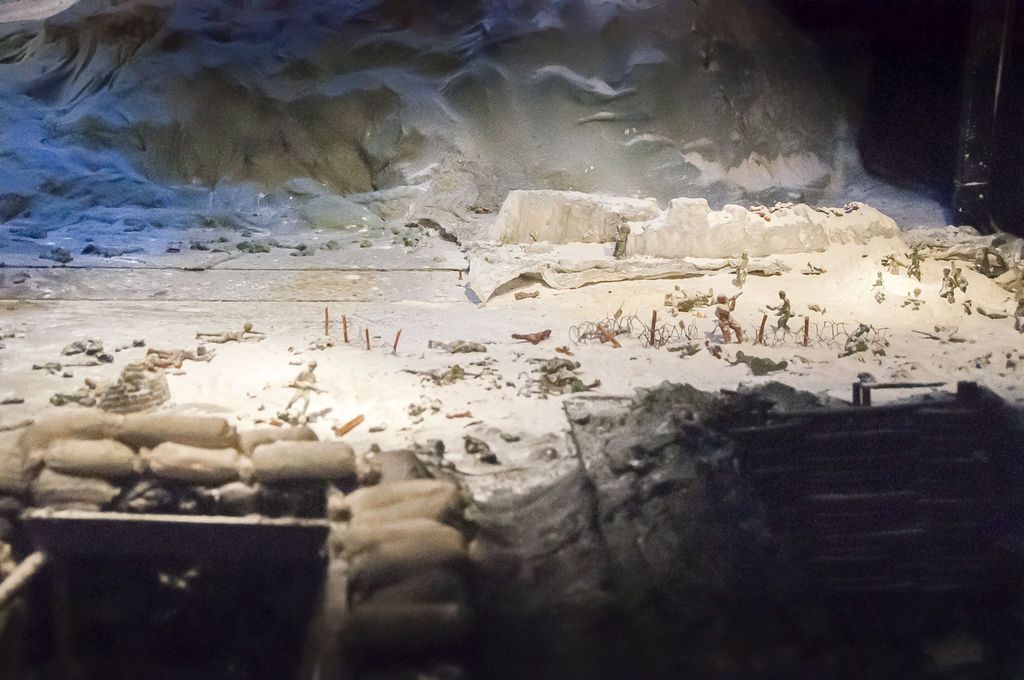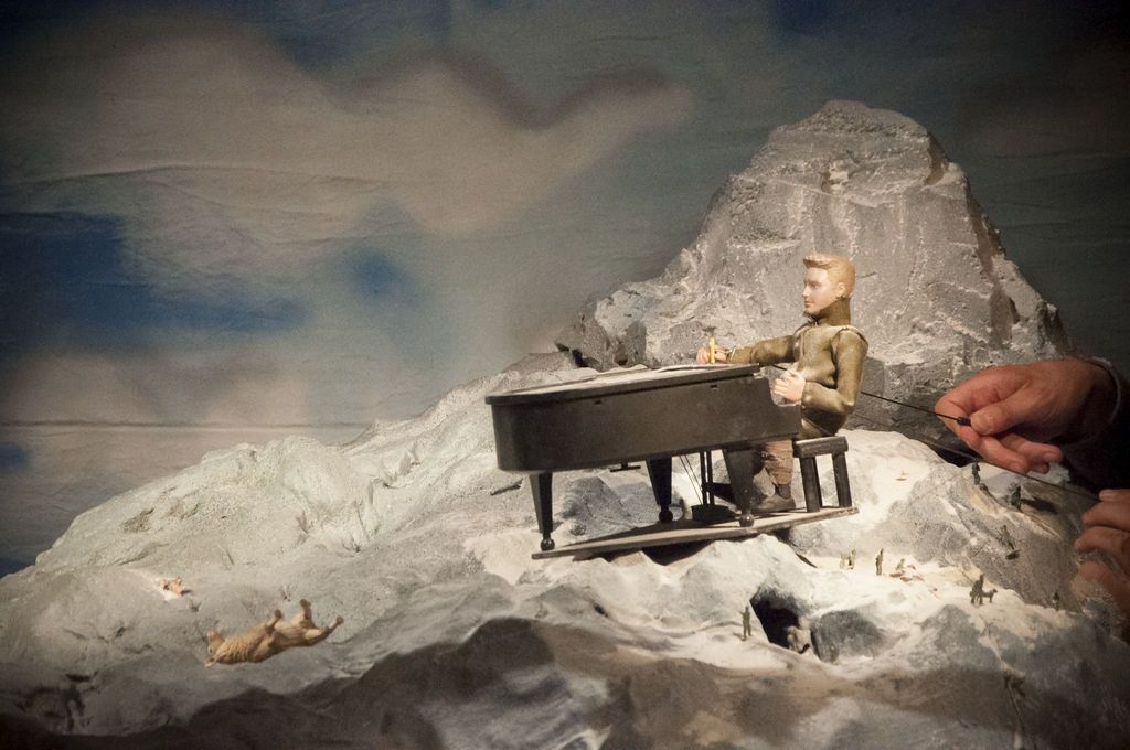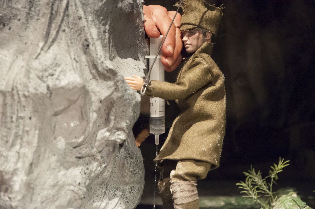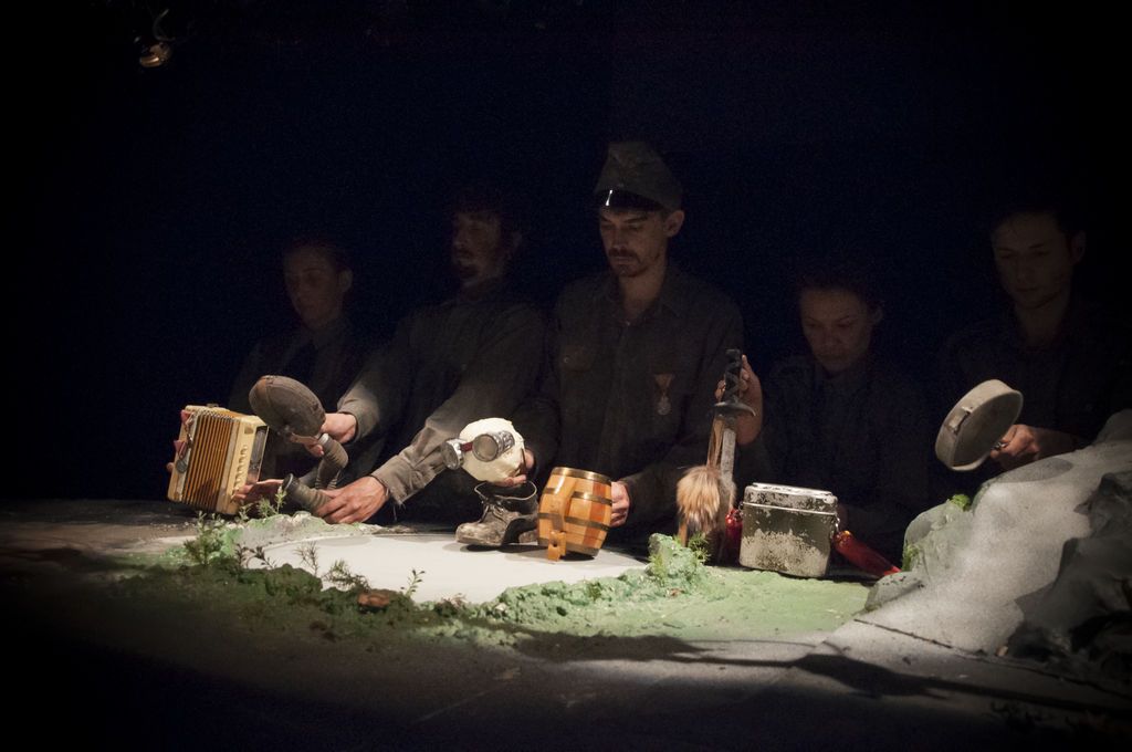 In The Bloody Mountain, Matjaž Pograjc will build upon his innovations with audio-visual material from the Soča Front, where the actors, on an immense model of the Goriška region, animate miniature puppets, battle sites, shellfire, life in the trenches and encampments and with a combination of acted scenes of stories about the people affected by the war conjure the hopeless slaughter. The stories told create an anti-war satire and, in combination with the miniature people, original objects and arms from the Soča Front, speak about the cruelty and senselessness of war.