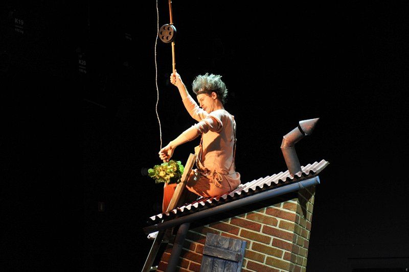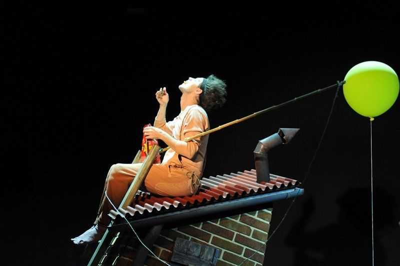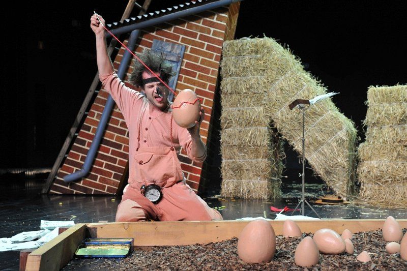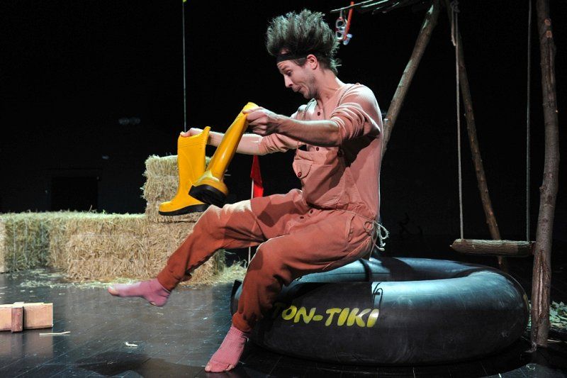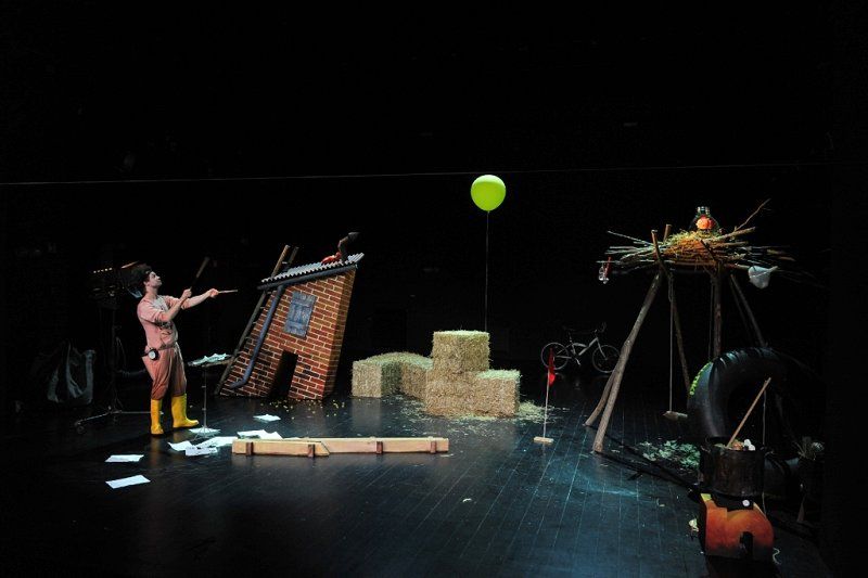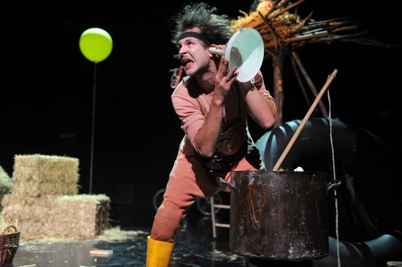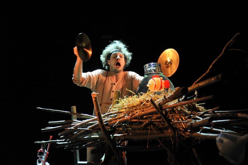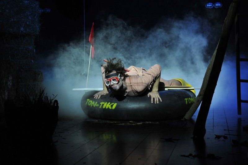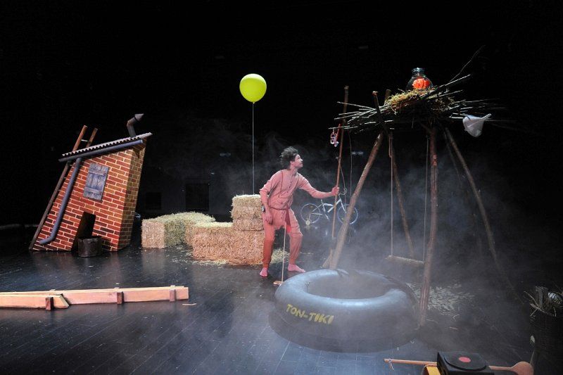 /…/ Vitezovo domišljijsko razprto pesniško besedilo o »čudnem patronu« Antontonu iz »desete vasi«, ki, med drugim, jajca zatika v zemljo (da bi dozorela) ter molčečo ribo peti uči ..., so novogoriški uprizoritelji izkoristili zgolj kot izhodiščni »predtekst« (objavljen na spremljevalnem gledališkem lističu) za odrsko svobodno, živahno uglasbeno ter duhovito razgibano uprizoritev tako rekoč brez besed in ji nadeli zavajajoč podnaslov »mini opera za najmlajše«. Za prizorišče in plodno izhodišče nabrito razgibane in rockovsko ritmizirane odrske slikanice je poskrbel scenograf Branko Hojnik s prvinami in »partnerji« iz Antontonovega življenjskega in domišljijskega okolja, ki jih je pomenljivo in igrivo povezal in stiliziral tudi v črke iz imena Anton. V oranžnem kombinezonu, živo rumenih škornjih, z budilko za pasom in neukročenimi lasmi (kostumograf Matic Hrovat) ter s polnokrvno igralsko privrženostjo je Patru Harlu uspelo oživiti Antontona v prostodušnega in otroško igrivega krajevnega posebneža ter bistroumnega »božjega otroka«, ki naj bi prav z odrsko stilizirano drugačnostjo in notranjo svobodo najmlajše gledalce nevsiljivo navajal na strpnost in spoštovanje do vsakega drugega in drugačnega. Za »opero« ključno, tokrat rockovsko glasbo močno poudarjenih ritmov in ponavljajočih se kitarskih rifov, s katero uprizoritev izbrano pesniško izhodišče iz romantično idealiziranega ruralnega okolja prenaša v današnje utripanje urbane hrupnosti, robotizirane monotonije in zvočne zasičenosti, so prispevali avtorji, ki se skrivajo za imenom Čao Portorož.