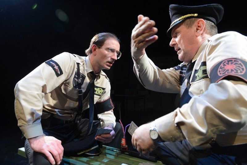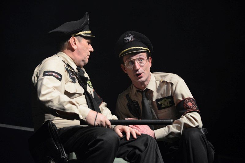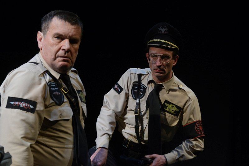 Igralski presežek je ustvaril Blaž Valič v vlogi Maurizia (novodobnega fašista), s poudarjeno notranjo šibkostjo tovrstnih kreatur, _ki v sebi odsotno moč iščejo v uniformiranosti, ponekod sicer z odvečnimi namigi, na primer v primeru policista Luciana (Jože Hrovat) in pedofilskih nagnjenj. Jasne, natančno grajene vloge Helene Peršuh kot TV voditeljice, proizvajalke in varuhinje normativnosti, ter Mire Lampe Vujičič in Branka Lična kot ostarelih zakoncev, zastopnikov "starih", ampak tudi že zapuščenih vrednot, dopolnjujejo menjavajoča se prizorišča (sodobno, vseprisotno taborišče; vrata med delavnico in stanovanjem so lahko tudi vhod v geto "pravilnih"; scenografija Dorde Bjelobrk) in glasbeni poudarki (Sebastjan Duh). Celostna podoba uprizoritve je oblikovana v odnosu na politike nestrpnosti in izključevanja.