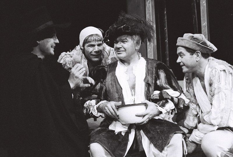 Prav tako lahko govorimo in moramo govoriti v presežnikih tudi o igralskem ansamblu. Pri tem ne govorimo o dobrih, marveč po vrsti o samih odličnih igralcih, ki so nam dali jedrnat pouk igralskega izraza in komike. Prav zato moramo našteti vse: Radoš Bolčina, Ivo Barišič, Stane Leban, Bine Matoh, Mira Lampe-Vujičić, Sergej Ferrari, Breda Urbič in Maja Sever.