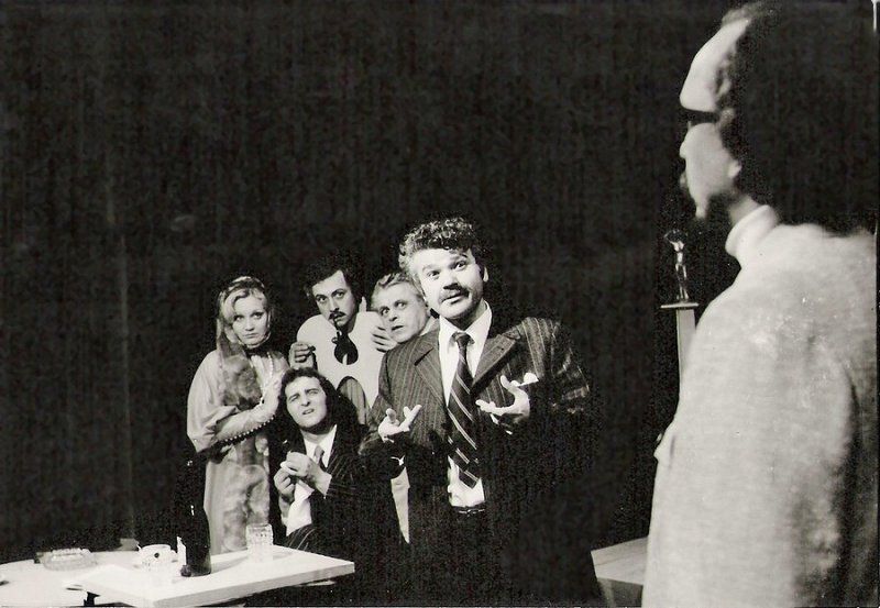 Igralska zasedba je številčno močna. Nekatere vloge so bile pravi dosežki, drugi so se znali podrediti konceptu in so znatno pripomogli k uglajenosti predstave. Posebej velja omeniti Staneta Lebana, Matjaža Turka ter Jerico Mrzelovo. Stane Leban (Spasoje Blagojević) je znal poustvariti in biti odziven na ves mozaični svet, ki ga obkroža in katerega sam je gibalo. Lebanova mimika je izvrstna, zunanjost ustrezna domenku z režiserjem, igra dinamična in lahkotna – to je vse dotlej, ko ostane Leban v pritišanem pogovornem slogu. Lahko bi bila izpeljava vloge odlična, če ne bi motil Lebanov govorni organ, ko igralec preide od časa do časa v nekontrolirano hreščavost v pojačanih in močnih tonih; prehodi med temi so nekoliko forsirani. Matjaž Turk (Pavle Marić) je bil prava pojava dozdevnega pokojnika, nekoliko eteričen, s pravo mero komičnosti in poantiranja, z žlahtno dikcijo. Z dovolj napeto igro je poustvaril »suspense«, ki ga je prenašal na avditorij vse do nezaslutenega zaključka. Jerica Mrzelova (Rina) je ponovno pokazala pravilen odnos do tovrstnih vlog; zna biti prefinjena, obvladati oder, v razburljivih prizorih zna ohraniti Rinino dostojnost, ki ji jo je določil režiser. Njeno občasno zapadanje v preživahno mladostnost je združljivo z realnostjo predstave. Rajko Stupar (Milan Novaković) kot gost, Iztok Jereb (Ljubomir Protić) ter Ernest Zega (Anta) so brez večjih pripomb lepo izoblikovali narodne koristolovce ter ustrezno uokvirili mafijski klan. Ljubka in lahkotna je bila Teja Glažarjeva v vlogi Vukice. Karikaturne vloge Mladena Djakovića, Mileta Adolfa Schwarza ter – delno – detektiva so korektno in prizadevno tolmačili Sergej Ferrari, Ivo Barišič, Stojan Colja in Feri Camplin. Gospod Djurić je bil domena Janeza Lavriha. Reči moram, da je svet »ministrov« predstavil malce lahkotno, prelahkotno. Je morda režija usekala mimo? Poglavje zase je bila Dragica Kokot-Šolarjeva v vlogi stare device Agnije. Prizadevna storitev, vendar bi bila za spoznanje lahko bolj karikirana. Služkinji sta marionetni vlogi, ki sta ju rešili Metka Ferrarijeva in Berta Ukmarjeva.