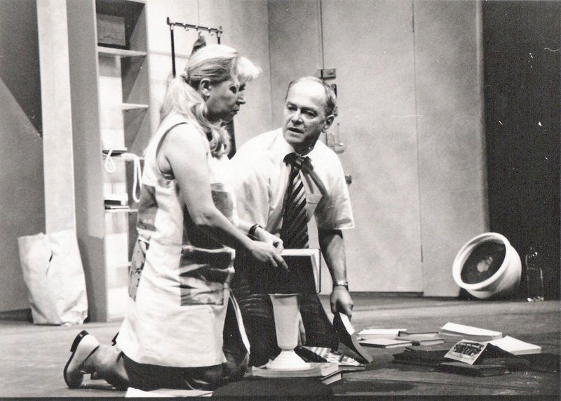 Bine Matoh se je povsem naravno preobrazil v Mela, preprostega, malega človeka, ki bi lahko prebival v katerikoli razviti državi sredi brezposelnosti, onesnaženega okolja in podobnih tegob. Gledališki umetnik je dosledno oblikoval vse nianse Melovega značaja v raznih situacijah. Mira Lampe-Vujičić je bila njegova »trezna« soproga, ki pa se ob koncu, ob težko dočakanem sneženju, postavi vštric njega, da bi skupaj izvedla načrtovani »maščevalni« naklep proti predrznemu sosedu. Milan Vodopivec je prepričljivo prikazal Melovega poslovno uspešnega brata Harryja; njegove tri že na prvi pogled smeh vzbujajoče sestre so v dobro premišljenih kretnjah in domiselni mimiki v svojem kratkem odrskem posegu duhovito orisale Nevenka Sedlar, Metka Franko, Dragica Kokot. Njihove značajske poteze je še poudarjala dobra izbira oblačil kostumografke Ane Matijevič. Scenografska zasnova Barbare Matul Kalamar je učinkovito utesnjujoče uokvirila dogajanje.