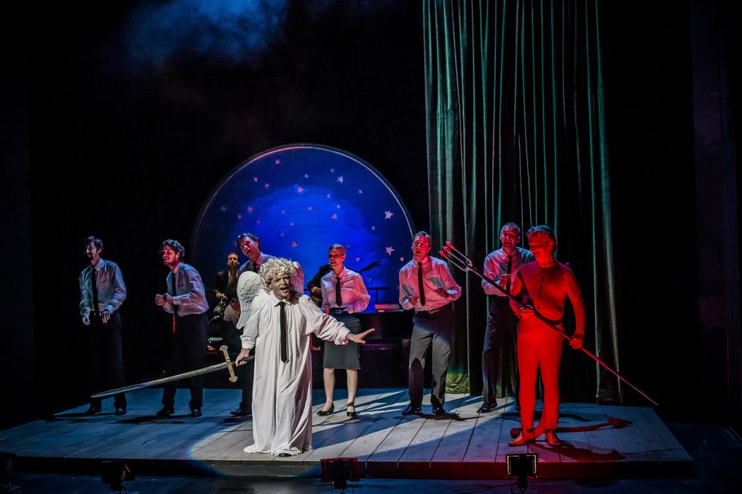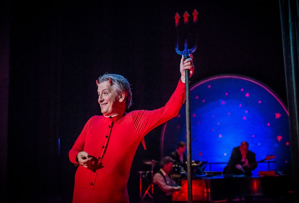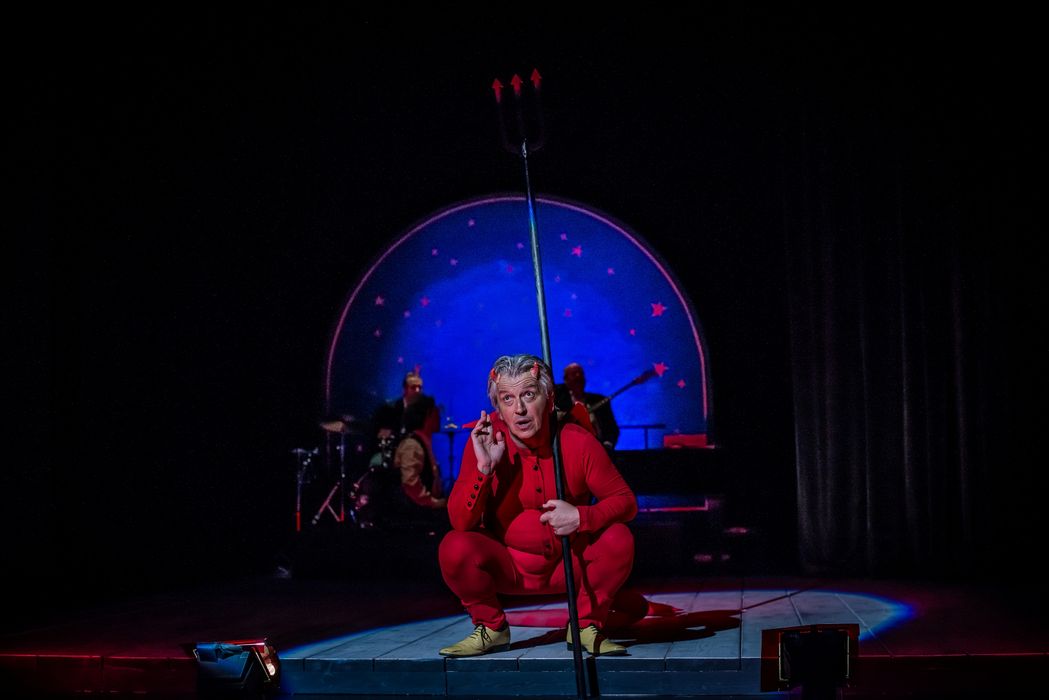 Na tem odrčku je Mlakar suveren rezoner, mojster ceremonije in uravnalec, ki mora na koncu priznati, da je smeh ogledalo duše in vse na svetu omejeno – razen človeške neumnosti, na kateri se vrag in z njim ta komični muzikal obilo pase.