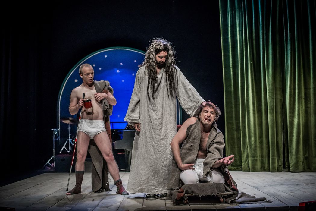 Besedilo je napisano z vsem spoštovanjem do svetopisemskega izročila, saj Iztok Mlakar pri pisanju za oder enako kot v svojih songih razpostavlja človeške vrline in »vrline« rahločutno, z ostrim švrkanjem, a vselej tudi s srčnim razumevanjem. Ko tokrat izpisuje svoje videnje in razumevanje enega temeljnih besedil zahodne civilizacije, se mu pod peresom oblikuje gibek, duhovit in bister dialog ter polnokrvne figure, zemeljske in izrazito zdajšnje – ne glede na to, ali so to človeške figure, trije kralji, Jožef, Marija, farizej, saducej, Janez Krstnik, Marija Magdalena, Juda ..., ali mistične, Jezus, angel ali hudič.