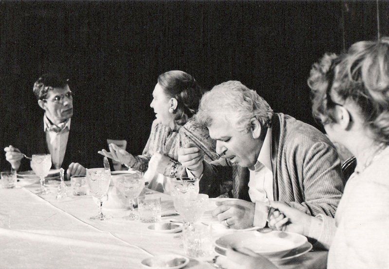 Levji delež predstave je ležal vsekakor na gostji, igralki Štefki Drolčevi, ki ji je tudi avtor namenil pravzaprav osrednjo vlogo, saj pretežni del besedila zajema prav njeno vlogo Ane, žene pisca tetralogije Mortiza Meisterja. Drolčeva je že v uvodnem, bravuroznem, dolgem, a nič kaj dolgočasnem monologu na začetku predstave pravzaprav obeležila vse, kar se bo kasneje dogajalo na odru. Tako je dala celotni uprizoritvi pečat njene igralske osebnosti, ki je, kot pravimo, že takoj napolnila ves prostrani oder s svojo osebnostjo. Stane Leban je kot njen mož upodobil v bistvu nebogljenega, povzpetniškega malomeščančka, ki je ves pod »komando« svoje ambiciozne in prav tako nemško puhoglave žene. Ves ta ništrc intelektualizma, pisunstva in nemške pedanterije sta posrečeno dopolnjevala še gospodična Werdenfeisova, doktorantka in plemkinja, ki jo je odlično odigrala Mira Lampe-Vujičić, zlasti v pohlevnem in pedantnem raziskovanju dela »velikega« Meistra, o katerem pripravlja doktorat, in gospod von Wegner, novinar in očalar v vlogi Iva Barišiča, ki je prav tako dopolnjeval lažno nabuhlo in neresnično podobo »nesmrtnega« pisca tetralogije.