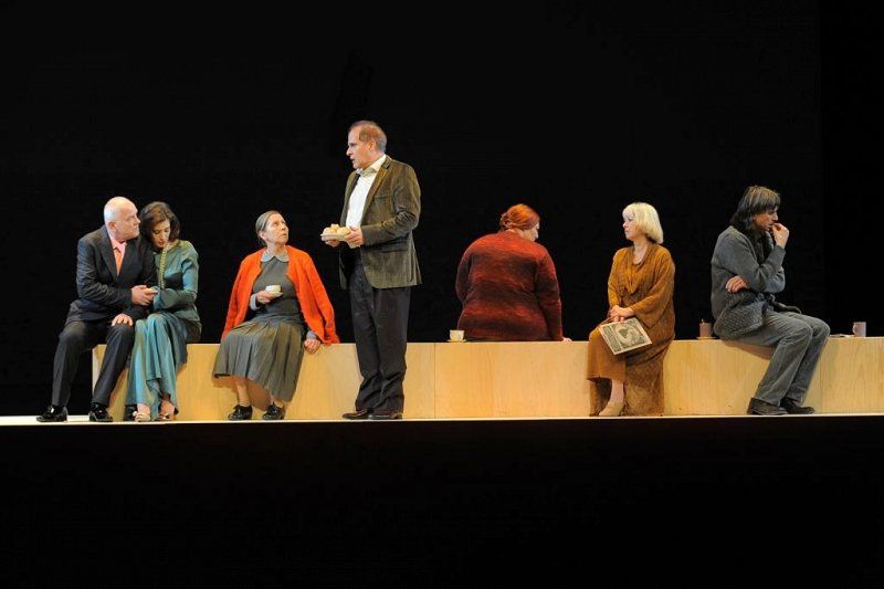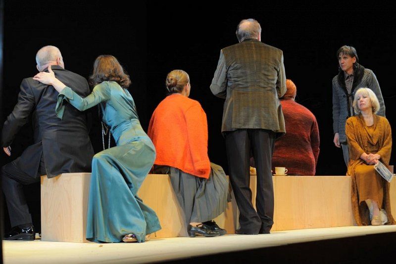 Lik Sonje je od prvega vstopa Ane Facchini na oder grajen na njeni močni prezenci, ki je v razmerju do nasprotnega spola osredotočena na možnost dogodka, ki se ne zgodi (Miro Lampe Vujičić, Sonjo v uprizoritvi leta 1978, srečamo tokrat v vlogi pestunje). Radoš Bolčina kot Vanja sešteje s pretresenim glasom in prezenco razočaranja nad izgubljenim časom in ljubeznijo, s pištolo pa povzroči napol farsični psevdoklimaks. Astrov Gorazda Jakominija gleda v več smeri in z več moči od Vanje, tudi njemu pa je Jelena zunaj dosega. Namrgodeni Serebrjakov Bineta Matoha seva drug svet in redko izstopi iz izmerjene obvladanosti. Medea Novak je kot Jelena nekoliko mehkejša, kot smo je vajeni, v kostumsko konvencijo vnaša razgaljeni mestni kodeks, kjer poskuša izzivati naravnost (kostumograf je Alan Hranitelj). Koležnikova, ki ji Čehov režijsko ni tuj, ustvarja vzdušje s skoraj odsotnim dekorjem in skupaj z Brankom Hojnikom zastavi sceno kot uprostorjeno zoženo možnost: akterje postavi na dvignjeni podij in jih poseda na podolžno klop, kar po vsem sodeč omogoča čakanje na nedefinirano.