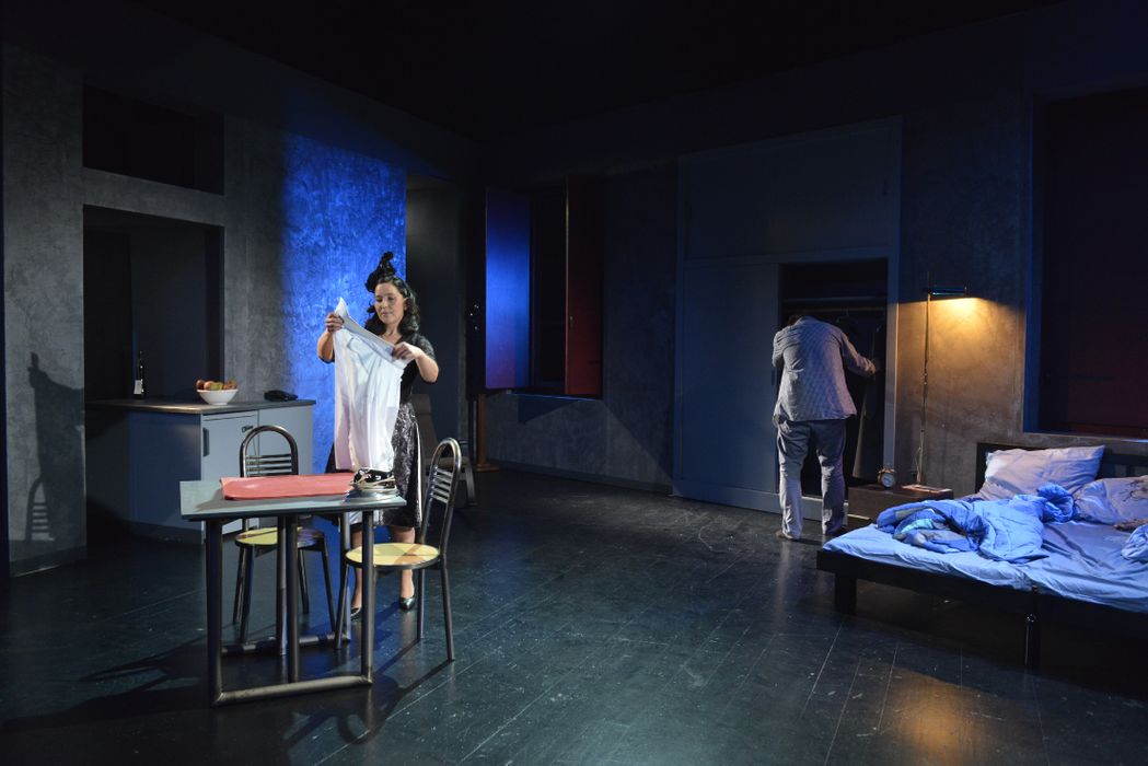 Med sanjami in večnostjo ... V decembrsko bleščeči Novi Gorici, polni svetlikajočih se prijaznih lučk, ki so praznično krasile tudi preddverje gledališkega hrama, se je v mali dvorani Slovenskega narodnega gledališča Nova Gorica, ki s svojo prostorsko zamejenostjo nudi gledalcu možnost, da se bolj poglobljeno zazre v odrsko dogajanje, zablestel kristalno čist odrski biser. 17. in 18. decembra 2014 sta bili namreč na malem odru premieri in hkrati prvi slovenski uprizoritvi lirične komedije Zgodba o pandah, ki jo pove saksofonist z ljubico v Frankfurtu (Uhistorie des ours Panda racontee par un saxophoniste qui a unepetite amie a Francfort) , ki jo je 1. 1998 kot rahlo tančico iz sanjskih podob, tišine in nadrealističnih nitk stkal Matei Visniec (1956), romunski dramatik, pesnik, časnikar in filozof, v slovenski jezik pa tankočutno prestavila Ana Barič Moder - igra je sicer prevedena v 18 jezikov. S prav tako rahločutno režijsko roko jo je v poetično uprizoritev pronicljivo, s spoštljivo pozornostjo do avtorja prelil Marko Sosič, ki se je po več kot dveh desetletjih vrnil v SNG Nova Gorica, v katerem je bil nekaj let umetniški vodja, ko se je še imenovalo Primorsko dramsko gledališče in je domovalo v Solkanu. Kot piše v gledališkem listu, je Visniec diplomiral iz filozofije na univerzi v Bukarešti. Umetnost je zanj zmeraj bila "prostor svobodnega izražanja" in pri srcu so mu vse literarne zvrsti, še posebno nadrealizem, dadaizem, absurdno gledališče, znanstvena fantastika in še kaj, odklanja pa socialistični realizem. To pa seveda zaradi režima, ki je vladal v njegovi domovini, in režimske politike, ki je postavljala strogo cenzuro umetniškim ustvarjalcem. Tudi njegovim delom seveda, ki so bila prepojena s kritičnim razmišljanjem o totalitarističnem sistemu, v katerem je svoboda preganjana pastorka in so režimski pritiski na dnevnem redu. Ko je ob koncu 80. let prejel štipendijo za študij v Franciji, je tam zaprosil za politično zatočišče, ostal na Francoskem ter začel pisati v francoščini. Po padcu berlinskega zidu so njegove igre lahko končno svobodno uprizarjali tudi na romunskih odrih. L. 1996 mu je Nacionalno gledališče v Timisoari priredilo festival, na katerem so predstavili njegova dela. Sedaj pa je eden izmed najbolj igranih avtorjev v Evropi. Njegova poetična komedija s pridihom onstranstva, ki je doživela slovenski krst, pa ne uperja kritičnih puščic v družbeno tarčo, ampak je vsa uprta v zgodbo umetnika in v njegovo ljubezen, v človeka in njegovo življenje. V njej sta namreč protagonista glasbenik-saksofonist in skrivnostna ženska (njegova ljubica, usoda, 'božja dekla'?), ki jo leta odkrije ob sebi, ko se zjutraj zbudi, potem ko je noč "prekrokal". Režiser Sosič je že od prvega prizora ustvaril posebno čarobno ozračje, čeprav bi se gledalcu zmotno zazdel začetek morda "realistično" vsakdanji. A že prve replike med protagonistoma nas popeljejo v neko čudno stanje, v drugačen, notranji svet, poln vprašanj o resničnosti in neresničnosti, ki ne najdejo odgovorov. Protagonist se prebudi v postelji z žensko ob sebi, a prav ničesar se ne spomni, kar je bilo prejšnjo noč, ona pa ve vse, kje sta bila, kaj sta počela, kako ji je on recitiral Baudelairove stihe in ji igral saksofon... Odslej on želi le, da bi jo bolje spoznal in da bi se še vrnila. Ona mu obljubi, da ga bo obiskovala devet noči. In tako stori, do poslednjega srečanja ... Zunanji svet je daleč stran od njiju, le občasno ga zaslutimo zaradi glasov po telefonski tajnici. Polagoma se gledalčeva zavest prepušča očarljivemu razpredanju pogovora med njima in se utaplja v tem njunem svetu, kjer je pomembna le ljubezen, ki ostaja skrivnost, kot je skrivnostno sicer vse naše življenje do zadnjega diha in še onkraj. Vse dogajanje, ki ga obkroža sicer realistična scena (Peter Furlan), lebdi med sanjami, svetlobo in temo, pa tudi samoto s kančkom grenčine; v njem se mešajo lirični in nadrealistični trenutki, vse je nekam s krivnostno romantično in večkrat nelogično, do zadnjega trka s trdo resničnostjo Njega in njo, ki se ob kozarčku črnine in pokvarjeni budilki podajata v svoje zavestne in nezavestne globine, ki jim je težko priti do dna, sta subtilno izrisala Gorazd Jakomini, ki je tokrat pri ustvarjanju svojega lika pokazal nesluten, zrel igralski izraz, kakršnega nismo poznali, in Marjuta Slamič (oblečena v elegantne kostume Neli Štrukelj in nosi prav taka fina pokrivala; oblikovalka leteli je Ana Lazovski), ki je neznano žensko odela s tisočerimi niansami v posebno enigmatično skrivnosten žar; ta je sijal iz njenih toplih pogledov in obžarjal vso uprizoritev. Slamičeva vsakič bolj preseneča s svojimi dovršenimi in doživetimi "spojitvami" z dramskimi liki. Igralca sta, skratka, ustvarila nepozabno dramsko dvojico, odeto v romantični nadih. To posrečeno poetično predstavo, ki jo je glasbeno opremil Stefano Schiraldi, si je treba ogledati in se prepustiti njenemu pretanjenemu liričnemu toku, kot ga je očarljivo začrtal režiser Sosič, ki je spet potrdil, da so mu take teme raziskovanja svetlejših in temnejših meandrov duše, med "zemljo in nebom", resničnostjo in domišljijo, zelo blizu.
