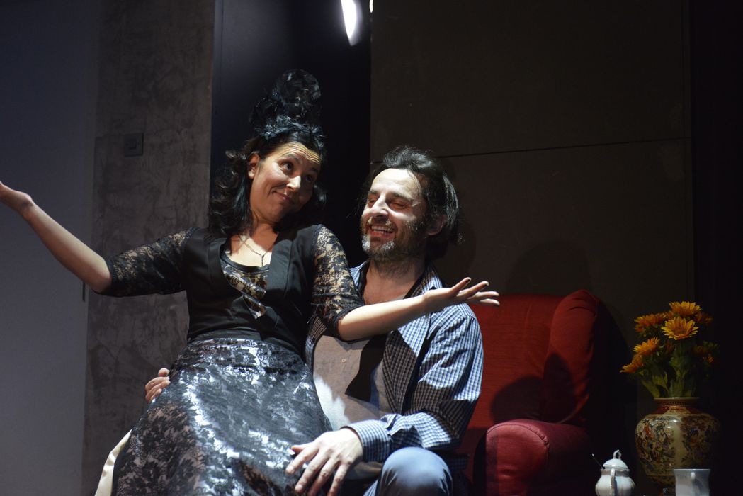 V Vişniecevi igri, ki jo je iz francoščine prevedla Ana Barič Moder, se On in Ona znajdeta v postelji. On se ne spomni, kako se je to zgodilo, morda zaradi praznih steklenic pod posteljo in še več v kuhinji, Ona mu pri razrešitvi prav nič ne pomaga. Skrivnostna je, brez ključev prihaja v zaklenjeno stanovanje vseh devet dni, za kolikor se zmenita odložiti konec, na obiske, prinaša čudne, nevidne ptice, ki se razmnožujejo, On medtem ne zapušča stanovanja. Vidimo, da gre za fantazmagorijo; saksofonist je slej ko prej negiben in neslišen, njegove novopridobljene darove, da sliši vse dogajanje v hiši, je mogoče pojasniti samo z močno senzibilizirano zaznavo, ki ni več čisto od tega sveta. Zgodba o pandi ... je tako fantastična melodrama, zgodba o veselem postavljanju in prividu sreče, ki naj prekrije tesnobnost ob prehodu. Režija Marka Sosiča ob dramaturški podpori Tereze Gregorič gradi predvsem na intimni atmosferi, na malo skrivnostnem, na videz samoumevnem, malo zmaknjenem fantastičnem srečevanju. Njega, ki je čisto vzhičen, in Nje, ki je sicer nasmejana, vendar zaradi pridiha onstranskosti Drugosti tudi nekako grozljiva; recimo z zapovedmi, da ne gre preveč ali pregloboko proučevati novonastalega stanja, kot bi se z razstavljanjem igrača pokvarila. Privoliti mora v čudež, da sta oba drug ob drugem, kadar Ona ne gre po svojih skrivnostnih opravkih - ima morda zraven druge kandidate za prehod? Uprizoritev gradi na tej dvoumnosti, na sproščeni bližini in skrivnostni potujeni tujosti, na drobnih ritualih, ki si jih par hitro prisvoji, pa seveda na vseh čudaštvih, ki nas sproti opozarjajo na zagate, ko bi poskušali svet z odra brezrezervno prenašati na izkušnje z našim. Umeščenost med tukaj in onstran podčrtata tudi kostumograflja Neli Štrukelj, ki z drobnimi potezami odstopa od mimetičnosti. Ona nosi mestoma živalske atribute, kožuh, perje, poudarja svojo anima-ličnost, in scenografija Petra Furlana je slej ko prej veristična, dokler se ne razpre v ozadje, dokler se prostor ne potegne nekam proti slabi neskončnosti. Marjuta Slamič in Gorazd Jakomini od prvega trenutka, ko se pokažeta izpod odeje in je On čisto vzhičen in malo rudi zbegan, vzdržita intenzivnost odnosa. On seveda nekoliko bolj zbegan, saj je Ona vodja igre, mojster ceremonije, pozna pravila in kot da tega ne počne prvič, zato njena premoč. On je tudi bolj zagnan in pristno pri stvari, z željo po bližini, ki je Ona seveda ne more povsem dati. Slamičeva je čudno ožarjena in nasmejana, po skoraj obstretu vidimo, da ni čisto iz tega sveta in zato tudi užaljenosti in drobna izsiljevanja lahkotno preigra in odigra, za Njenim sijočim in s stalno prijaznostjo skoraj raz-osebljenim, z nasmehom zamaskiranim obrazom čutimo empatijo, strasti pa - seveda - ne. Zgodba o pandi ... je tako čisto prisrčna uprizoritev, ki svojo na videz gladko in melodramatsko osnovo problematizira in prekrije z nadrealnim in skrivnostnim poprhom.
